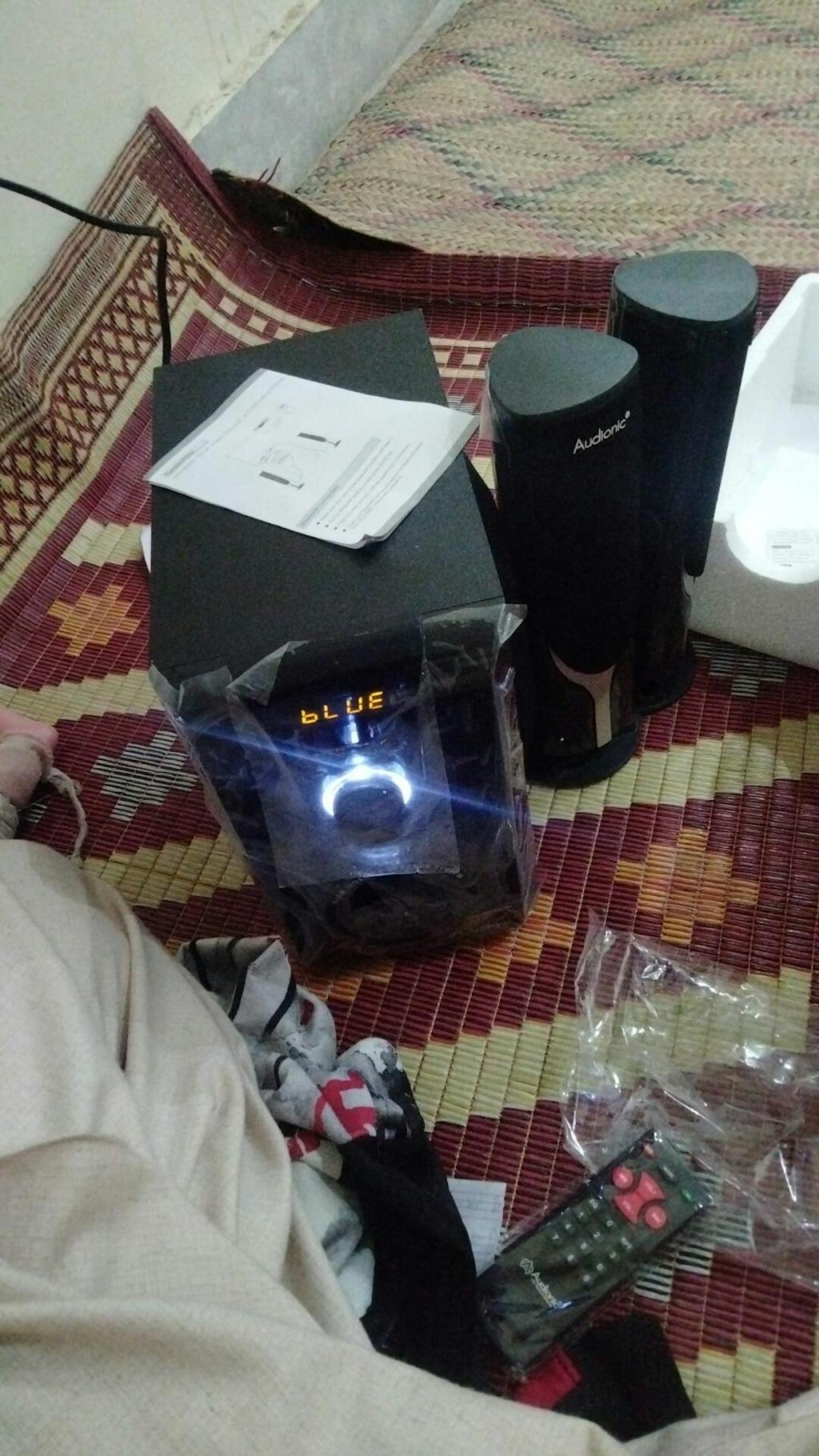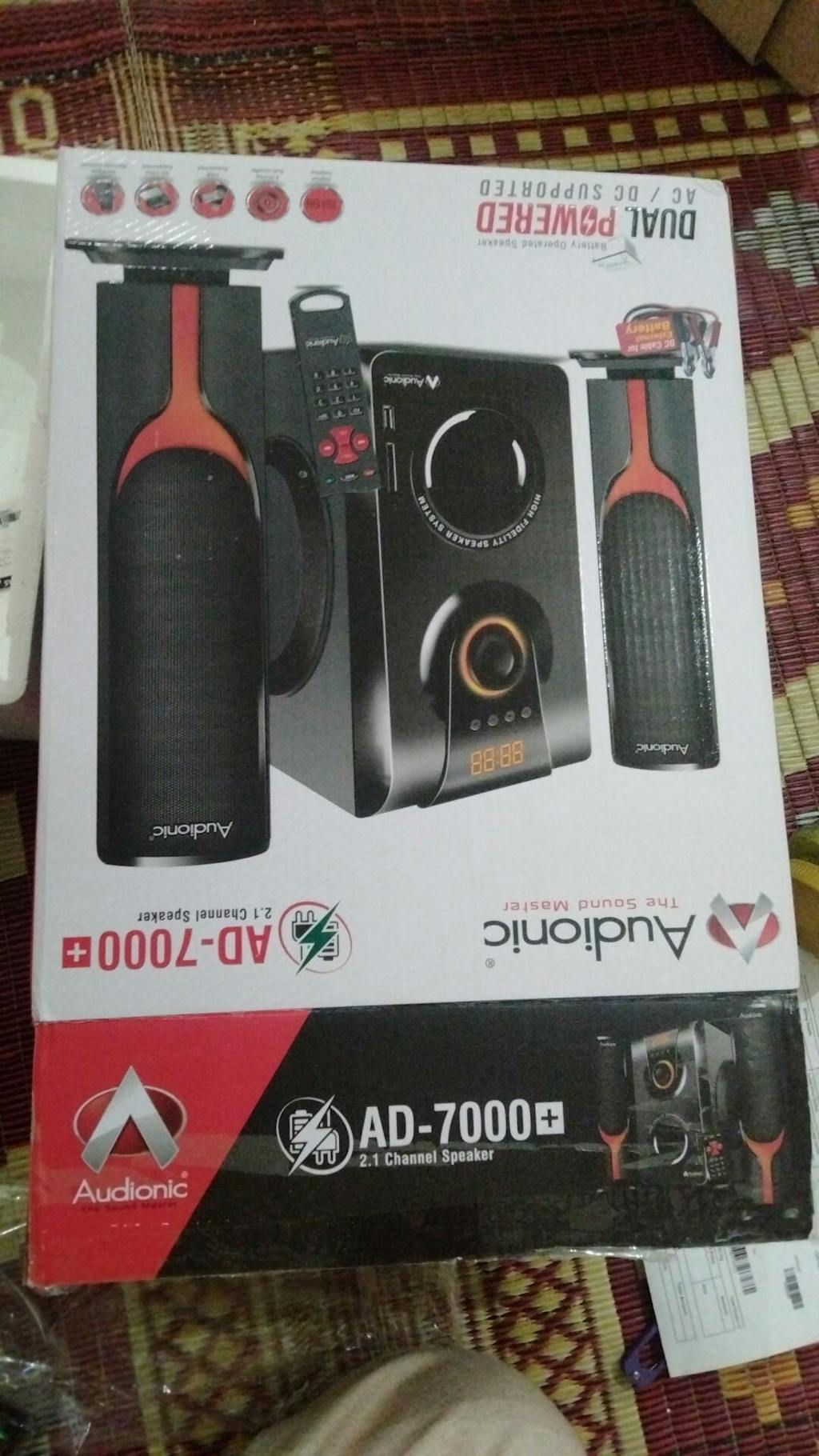 How do I connect my AD-7000 PLUS speaker to my TV? A: You can connect the system to your TV via an AUX cable. Plug one end into the Audio Output of your TV and the other end into the Audio Input of the AD-7000 PLUS. If your TV supports Bluetooth, you can also pair the speaker system wirelessly. How do the control the AD-7000 PLUS speaker? A: Use the toggle controls on the RAD-7000 PLUS allow you to adjust volume, toggle between different audio sources, and switch the system on or off. The remote control provides additional controls including Bluetooth pairing and specific audio settings. How do I pair my device via Bluetooth to theAD-7000 PLUS? On your device, turn on Bluetooth and search for available devices. The AD-7000 PLUS should appear in the list. Select it to initiate pairing. If asked for a password, refer to your user manual, but many devices use '0000' or '1234'. How can I achieve the best surround sound with the AD-7000 PLUS system? The optimal placement of speakers for surround sound is important. The main subwoofer can be placed near the TV while the satellite speakers should be placed in such manner that the sound is distributed in the room. What can I do if one of my satellite speakers is not working? Check to make sure all connections are secure and the speaker is properly powered. If the problem persists, the speaker may be faulty or the wire may be damaged. Consult your user manual or contact Audionic support. How can I adjust the bass level on the AD-7000 PLUS Speaker system? You can adjust the bass level using the remote control. Look for the bass control button and adjust it to your liking. Can I connect multiple devices to my AD-7000 PLUS speaker system at the same time? A: Generally, the AD-7000 PLUS system can only be connected to one audio source at a time. However, you can easily switch between devices by disconnecting the current device and pairing another. What should I do if the sound quality is poor? A: Make sure the audio source is of good quality. Poorly recorded or compressed audio will not sound good on any speaker system. Also, make sure the AD-7000 PLUS and the source device's volume are set appropriately - extreme high or low settings can distort sound.
