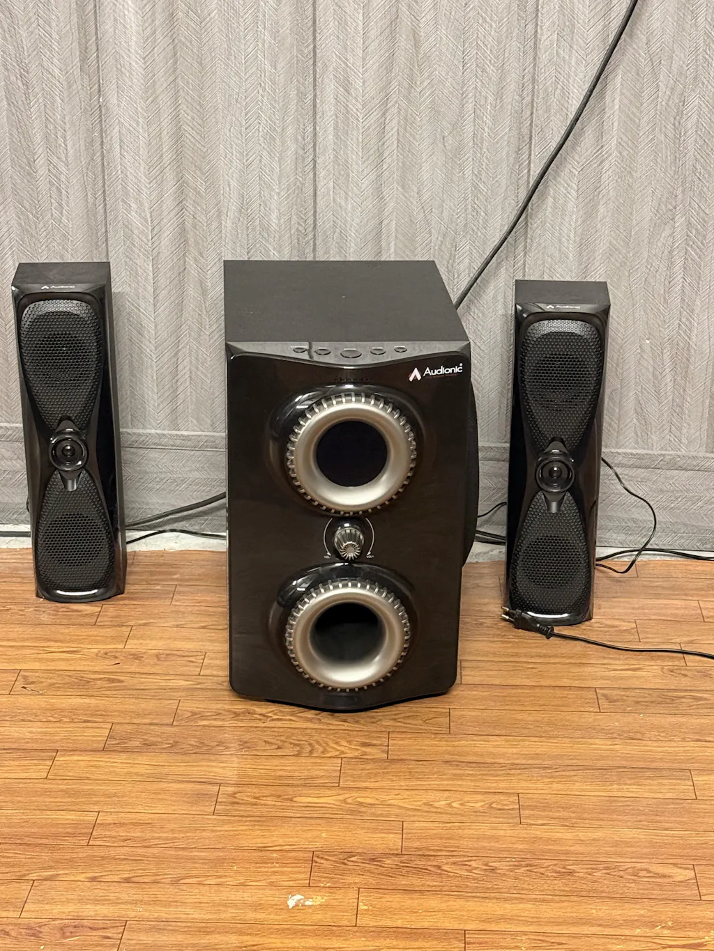 How do I connect my Rainbow R-35 speaker to my TV? A: You can connect the system to your TV via an AUX cable. Plug one end into the Audio Output of your TV and the other end into the Audio Input of the Rainbow R-35. If your TV supports Bluetooth, you can also pair the speaker system wirelessly. How do the control the Rainbow R-35 speaker? A: Use the toggle controls on the Rainbow R-35 allow you to adjust volume, toggle between different audio sources, and switch the system on or off. The remote control provides additional controls including Bluetooth pairing and specific audio settings. How do I pair my device via Bluetooth to the Rainbow R-35? On your device, turn on Bluetooth and search for available devices. The Rainbow R-35 should appear in the list. Select it to initiate pairing. If asked for a password, refer to your user manual, but many devices use '0000' or '1234'. How can I achieve the best surround sound with the Rainbow R-35 system? The optimal placement of speakers for surround sound is important. The main subwoofer can be placed near the TV while the satellite speakers should be placed in such manner that the sound is distributed in the room. What can I do if one of my satellite speakers is not working? Check to make sure all connections are secure and the speaker is properly powered. If the problem persists, the speaker may be faulty or the wire may be damaged. Consult your user manual or contact Audionic support. How can I adjust the bass level on the Rainbow R-35 Speaker system? You can adjust the bass level using the remote control. Look for the bass control button and adjust it to your liking. Can I connect multiple devices to my Rainbow R-35 speaker system at the same time? A: Generally, the Rainbow R-35 can only be connected to one audio source at a time. However, you can easily switch between devices by disconnecting the current device and pairing another. What should I do if the sound quality is poor? A: Make sure the audio source is of good quality. Poorly recorded or compressed audio will not sound good on any speaker system. Also, make sure the Rainbow R-35 and the source device's volume are set appropriately - extreme high or low settings can distort sound.